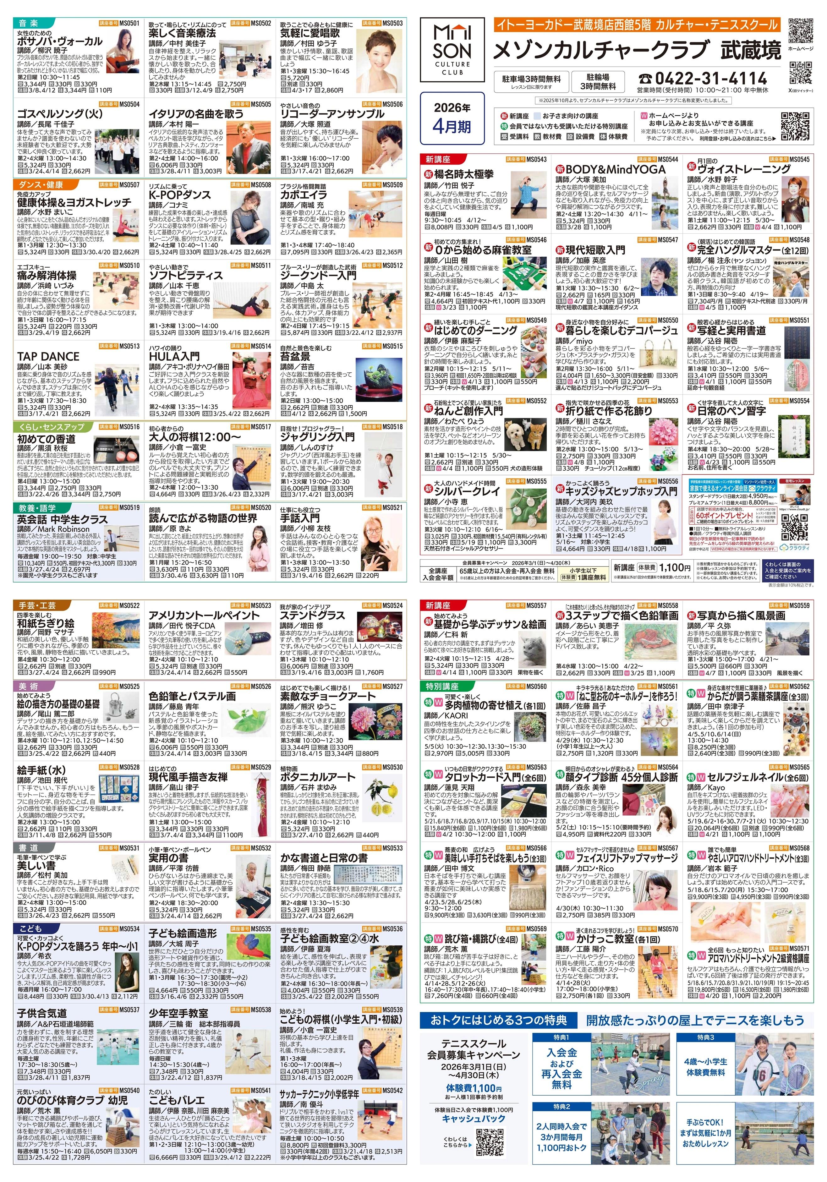 西館5階・屋上 カルチャー&テニススクール 新規 会員募集キャンペーン開催中!